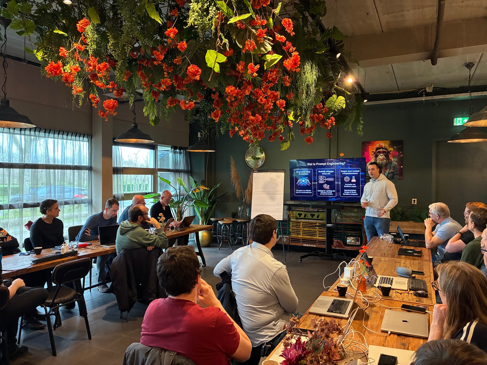 Na de theorie was het tijd om zelf aan de slag te gaan. Iedereen kreeg twee praktijkopdrachten: een aanpassing doorvoeren in de code en elkaars werk reviewen met behulp van Claude Code. Zo kon iedereen direct ervaren hoe het werkt in de praktijk.