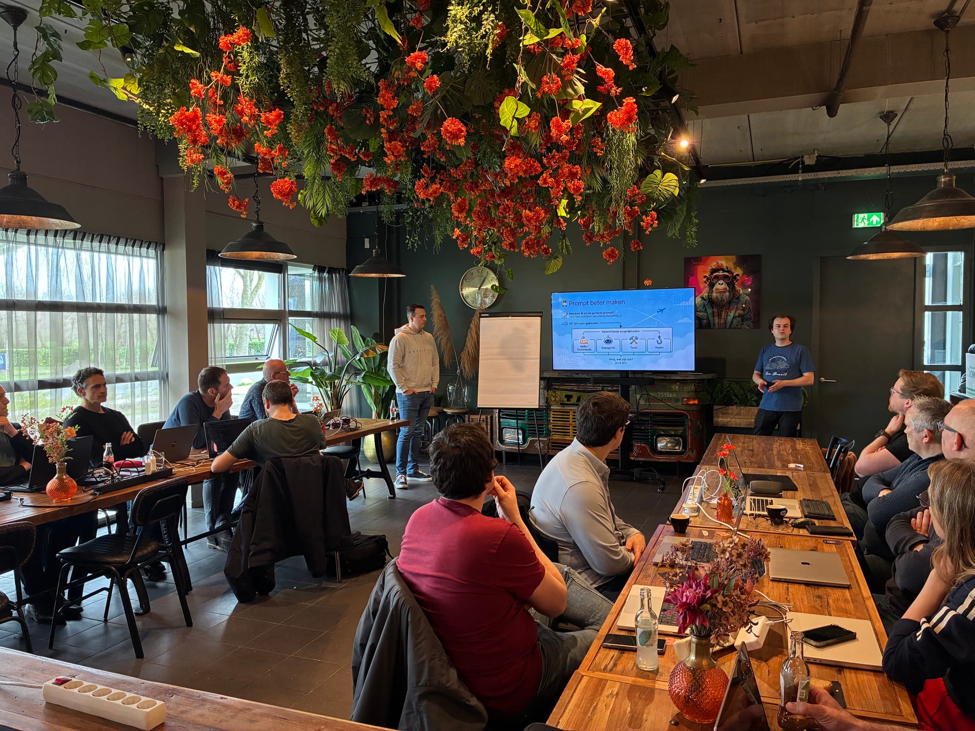 In het middagprogramma gingen wij een stap verder. Het centrale thema: hoe maak je Claude Code echt goed bruikbaar voor je team? Claude kan namelijk uit zichzelf al veel, maar vliegt nog weleens uit de bocht. Door het de juiste kaders mee te geven, stuur je Claude de goede richting op. Arjan introduceerde vier manieren om Claude slimmer te maken: