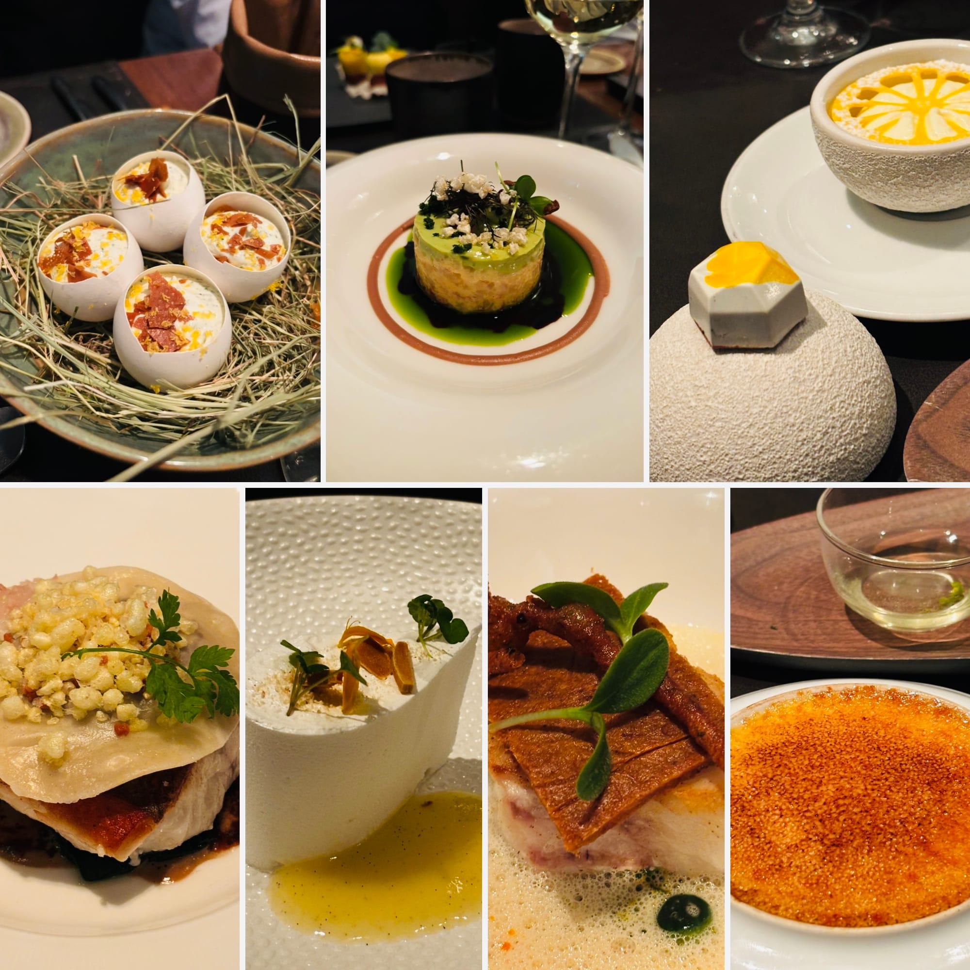 Officieel was het 4 gangen, maar met brood, amuse en nog 2 verrassingsdesserts bij de koffie en de thee was het een parade aan zaligheden. De bijpassende wijnen maakten het feest compleet. Hier gaan we het nog lang over hebben!