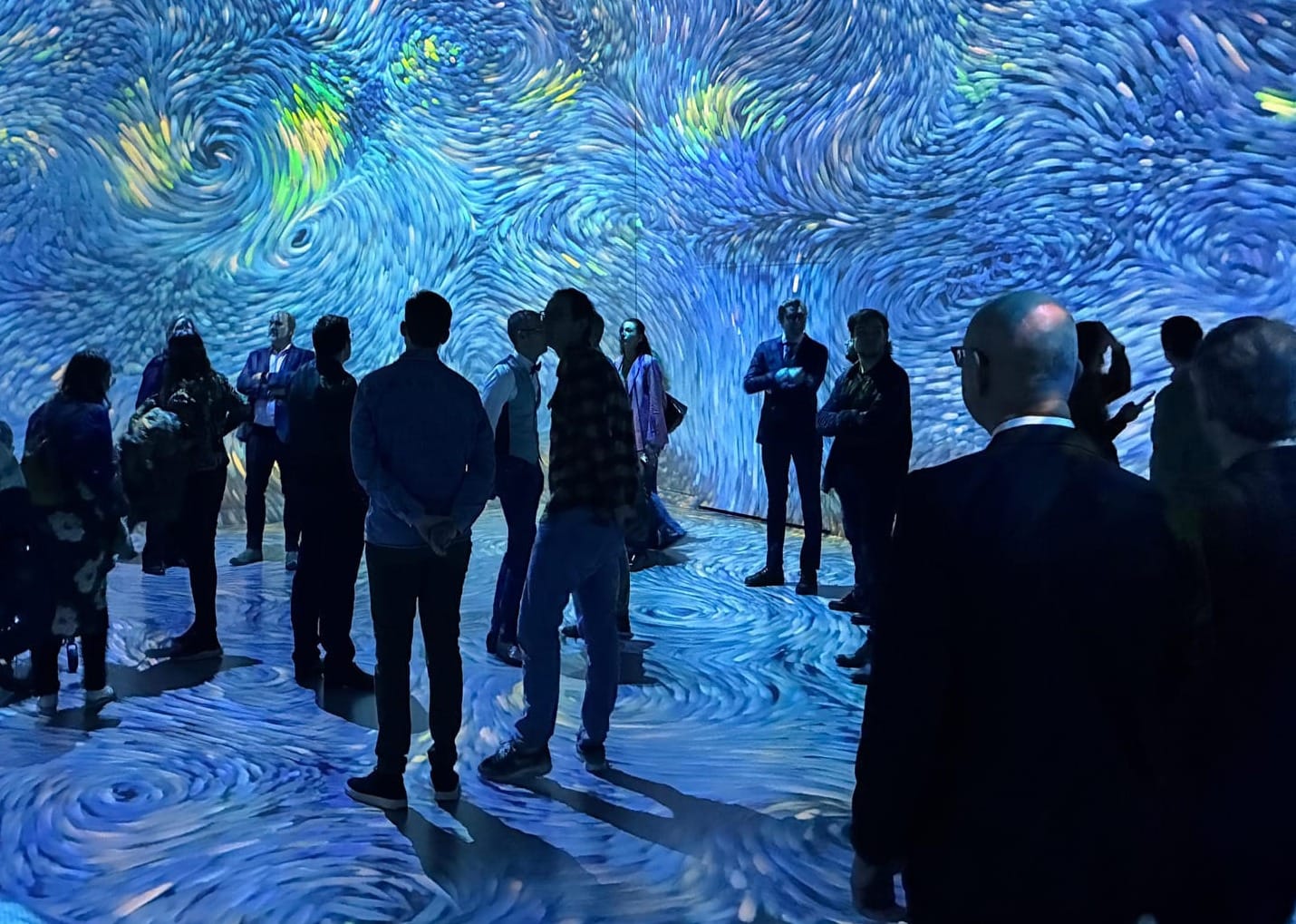 Afgelopen vrijdag was het zover - het langverwachte Kerstuitje van 42 was aanstaande. De avond begon bij Remastered in Rotterdam - aan de voet van de Erasmusbrug. Dit is een unieke beleving waarbij beroemde schilderijen geprojecteerd worden op de wand en vloer van de ruimtes en je dus helemaal omringd bent door meesterwerken. Je boekt een tijdsslot en doorloopt vervolgens met jouw groep in een uur de diverse ruimtes. In de eerste paar ruimtes zijn de belevingen ook nog eens interactief - jouw hand kan een school vissen van richting doen veranderen bijvoorbeeld. Een absolute aanrader voor jong en oud (mits je wel tegen lichtflitsen en harde geluiden kunt).