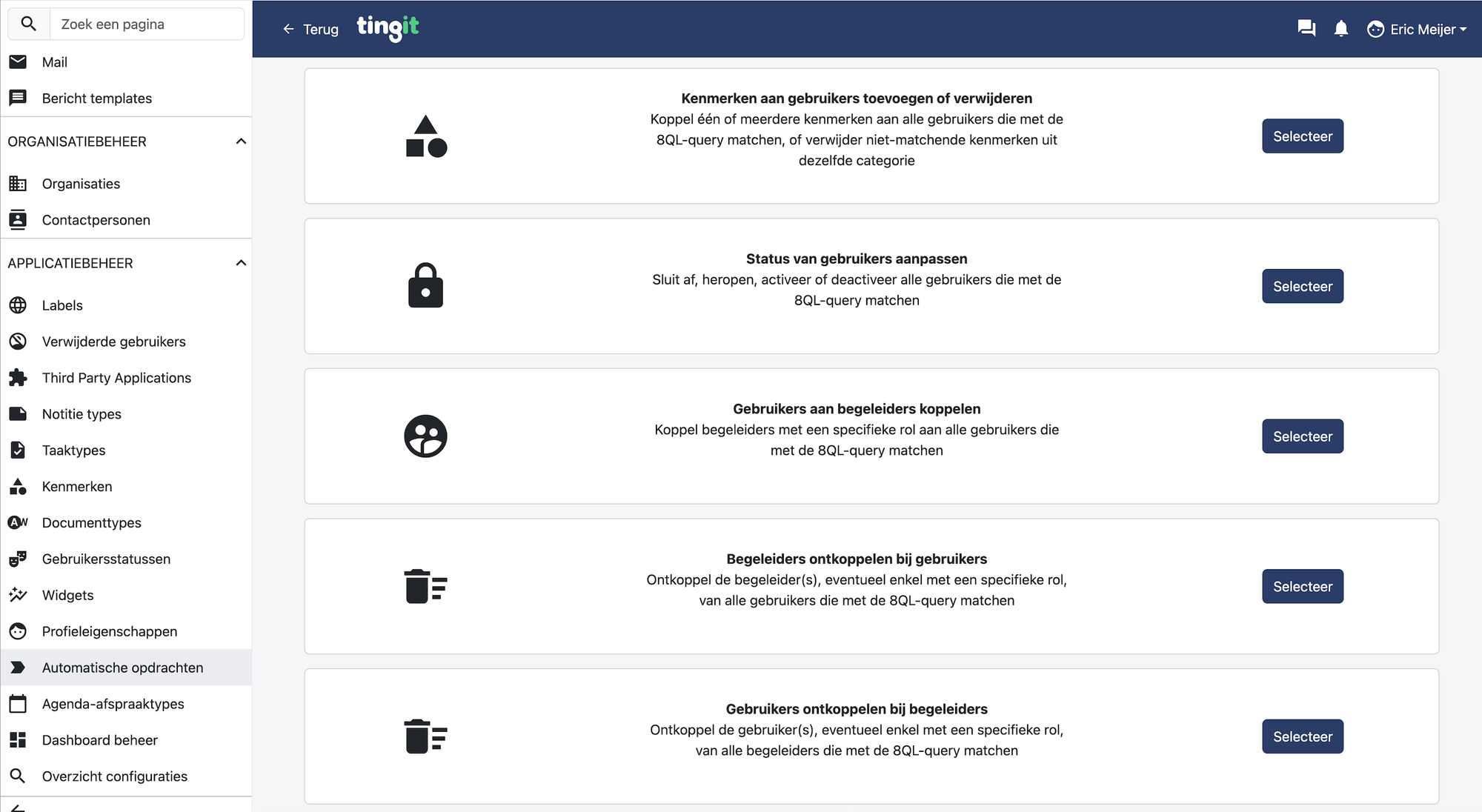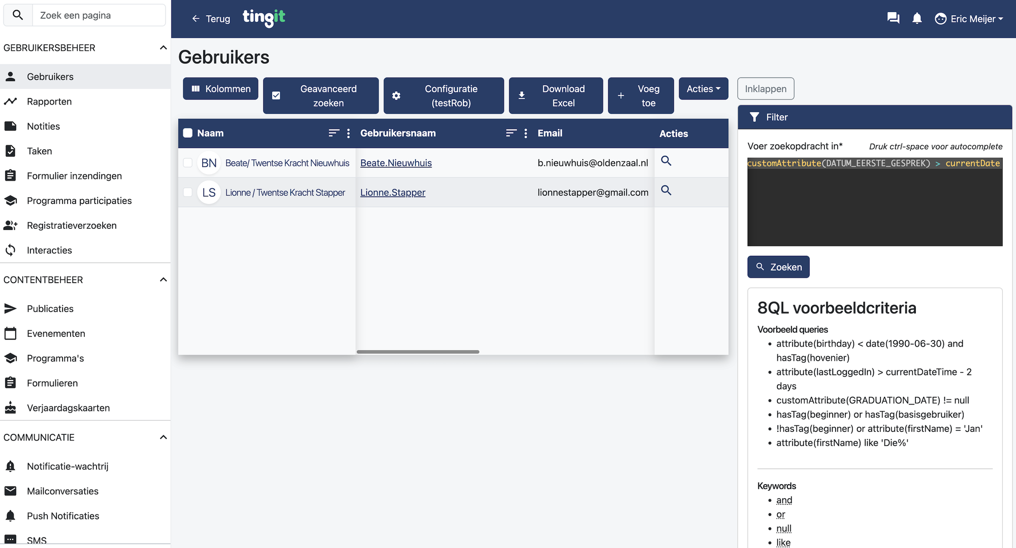 Een volgende stap is dat je 8QL queries kunt opstellen en daarmee periodiek handelingen kunt laten uitvoeren. Je kunt dat gebruiken om deelnemers te voorzien van kenmerken, de status van de deelnemer aanpassen of er begeleiders aan koppelen etc. Dit proces haalt een hoop vervelend en handmatig werk weg bij onze gebruikers en helpt om de data consistent te houden, zodat het werkproces optimaal ondersteund wordt.