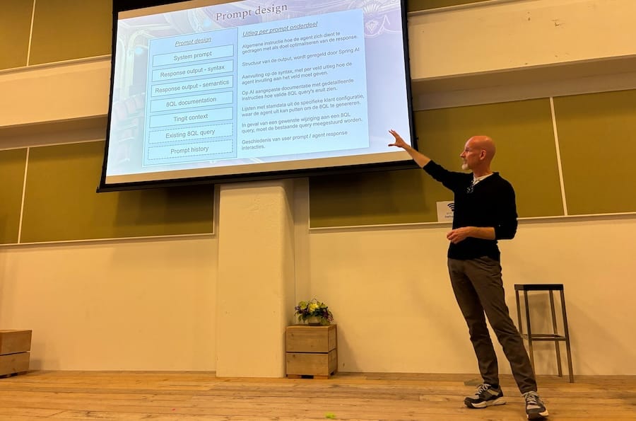 Recent had ik genoegen een presentatie te mogen geven op de Zoetermeer Tech Night. Mijn presentatie ging over het inbouwen van AI in software, oftewel Intelligente Software. Het was bepaald geen hype-verhaal. In plaats daarvan ging het over opgestroopte mouwen en doen wat nodig is om het geheel aan de praat te krijgen, welke hobbels je tegenkomt en hoe je er overheen komt.